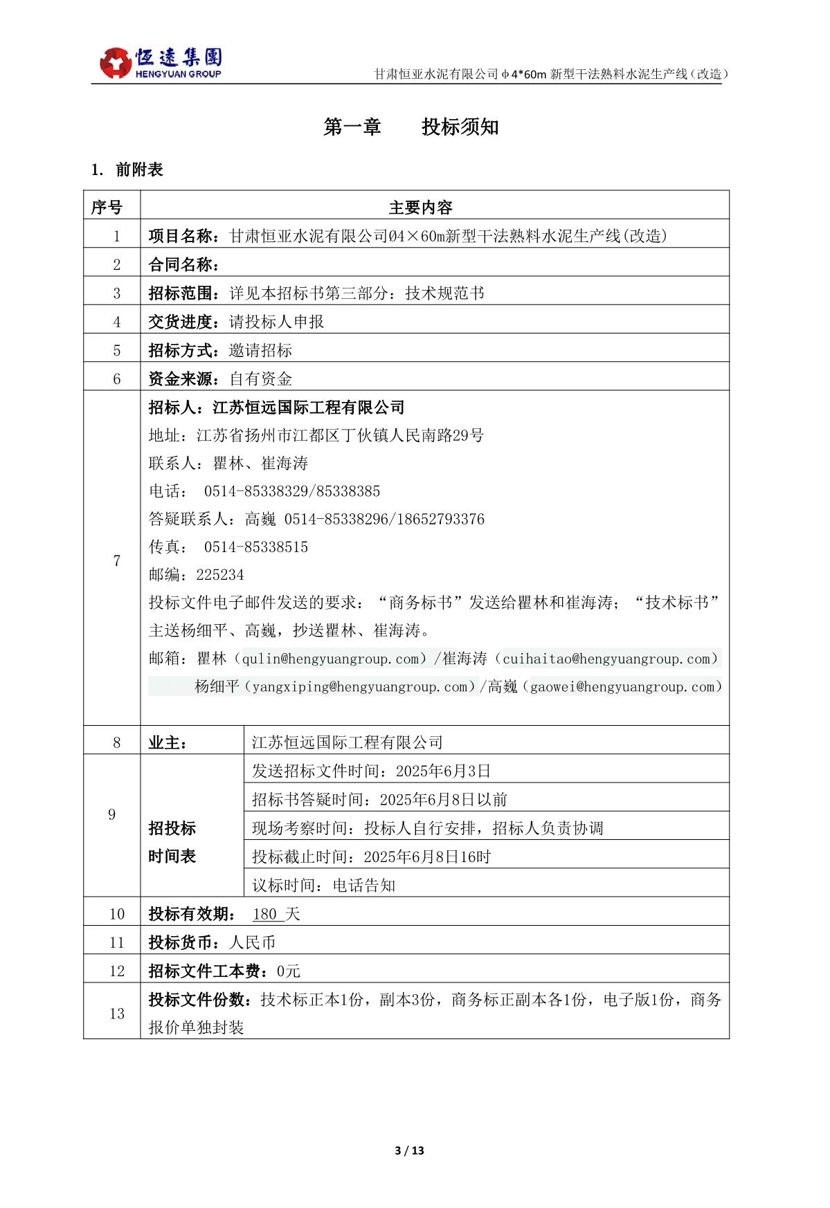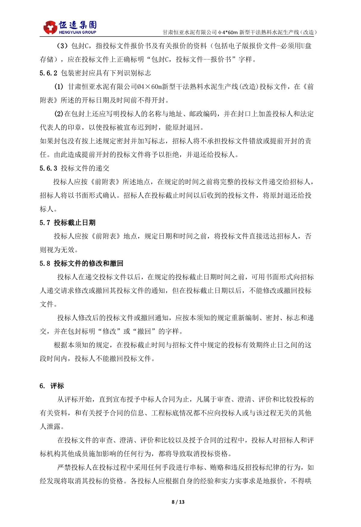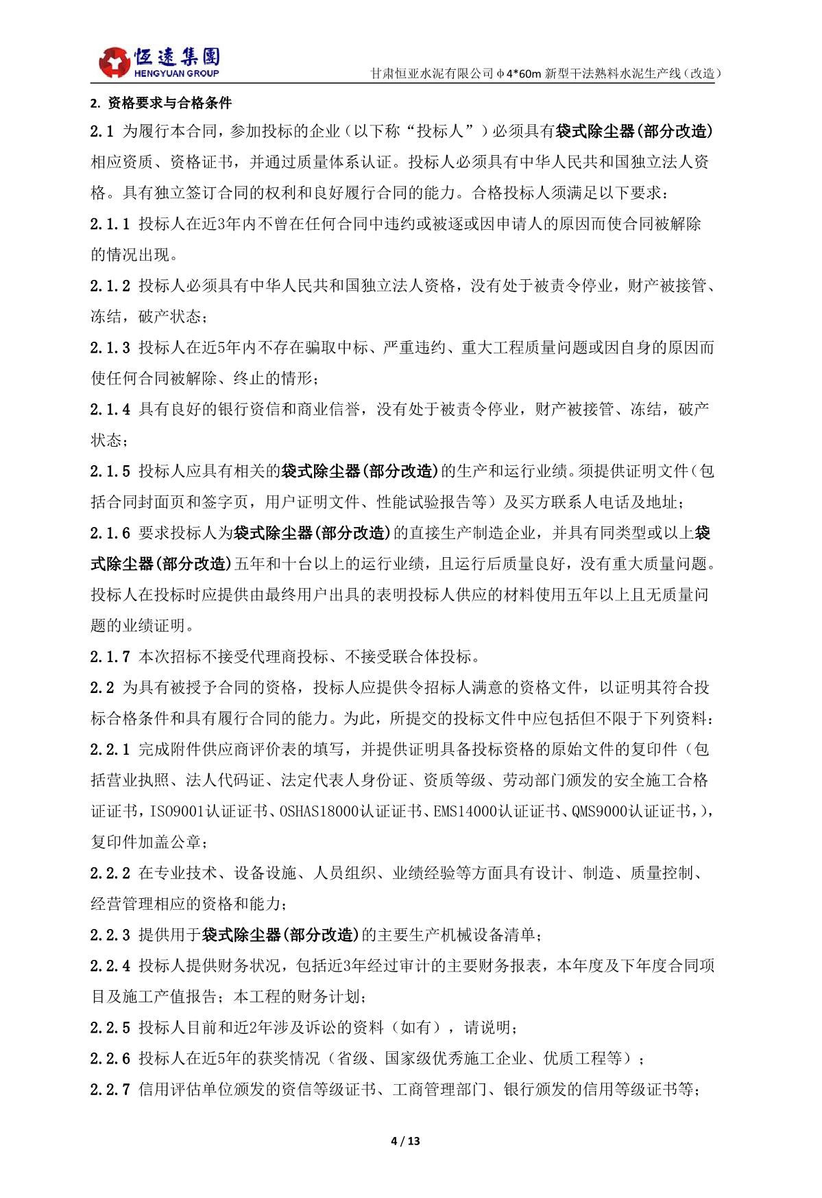 恒遠(yuǎn)集團(tuán)2025年6月6日甘肅恒亞水泥有限公司超低排放收塵器改造項(xiàng)目招標(biāo)