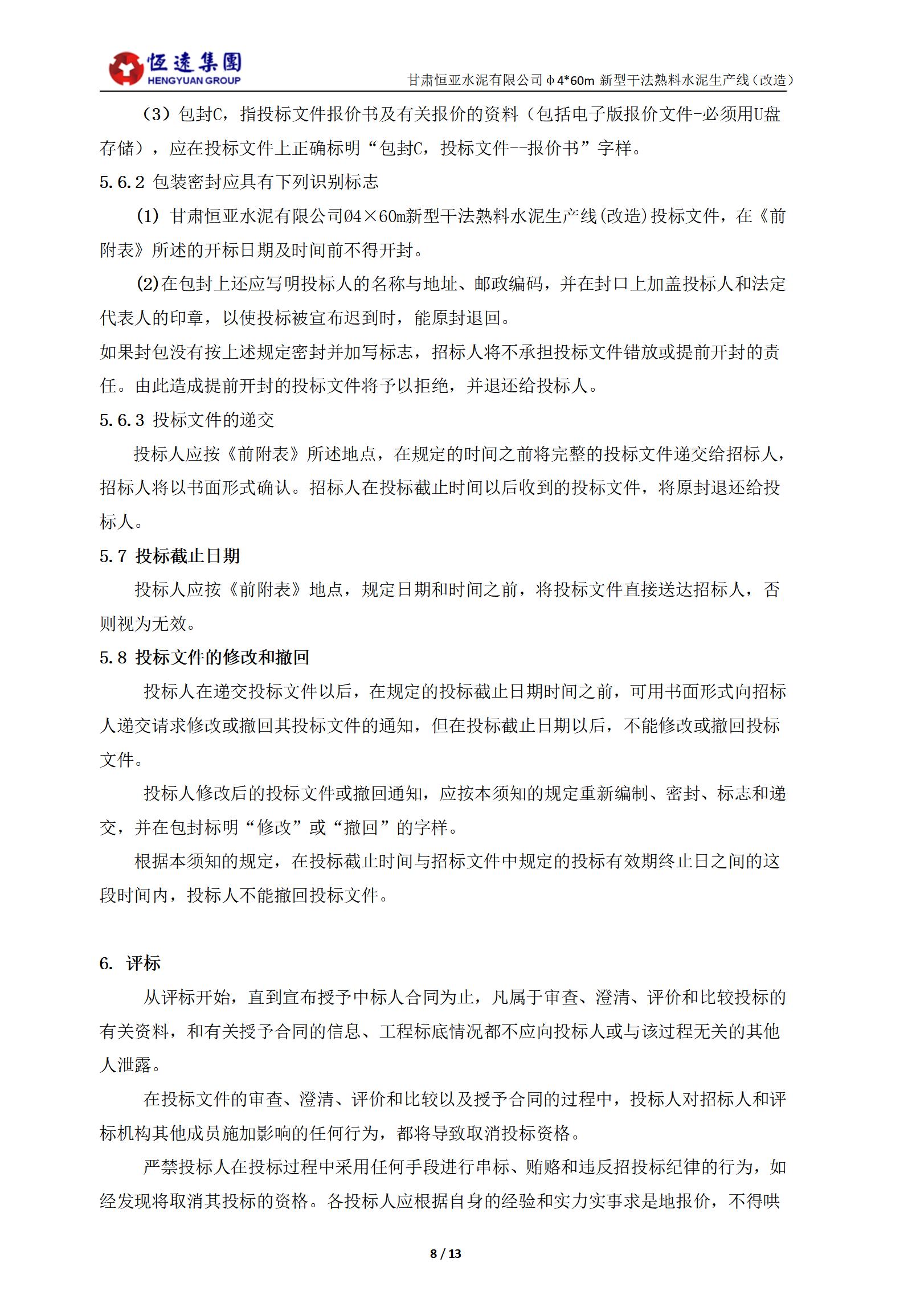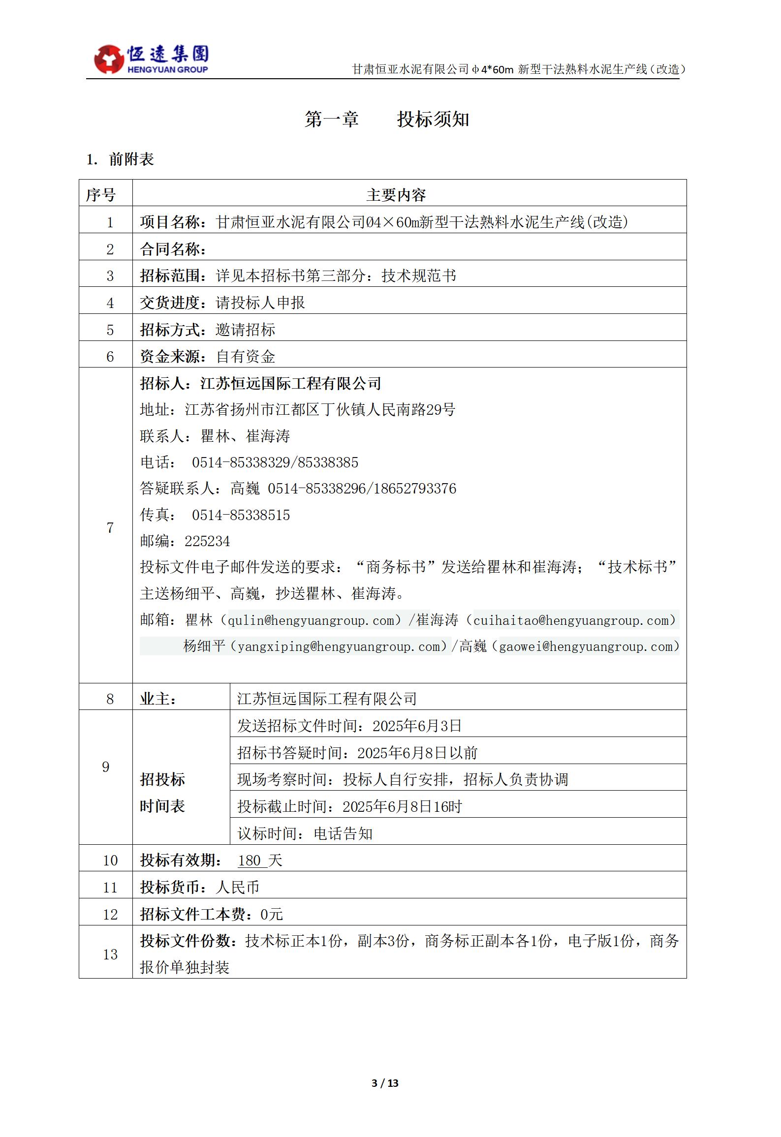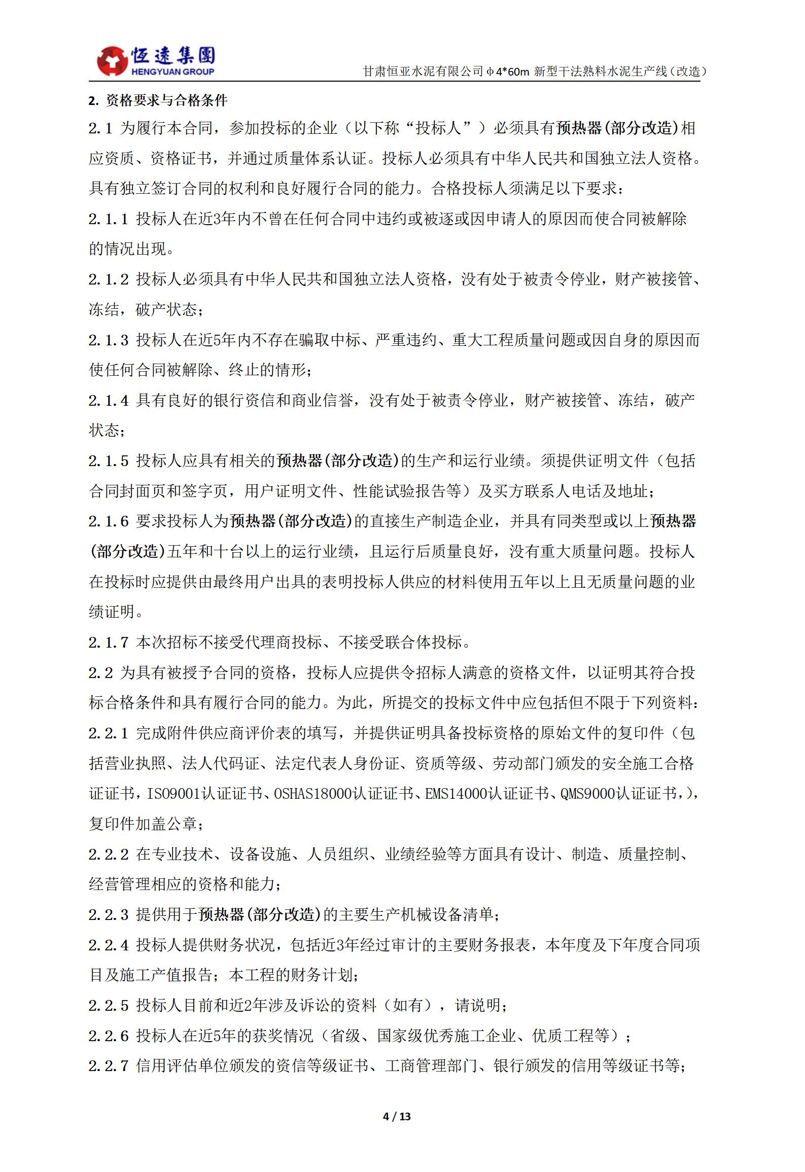 恒遠(yuǎn)集團(tuán)2025年6月6日甘肅恒亞水泥有限公司預(yù)熱器改造項目招標(biāo)