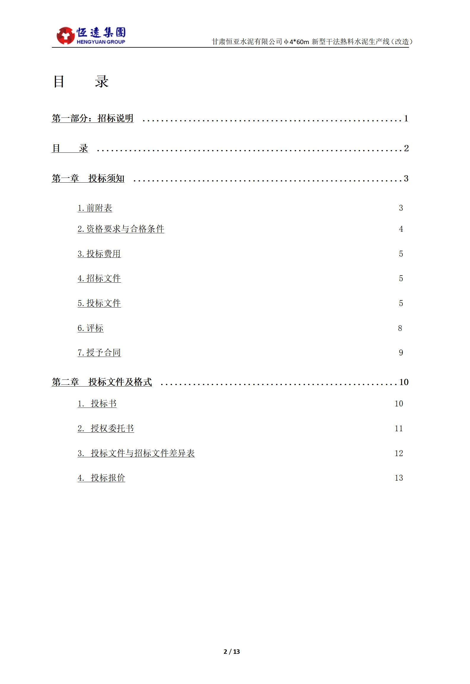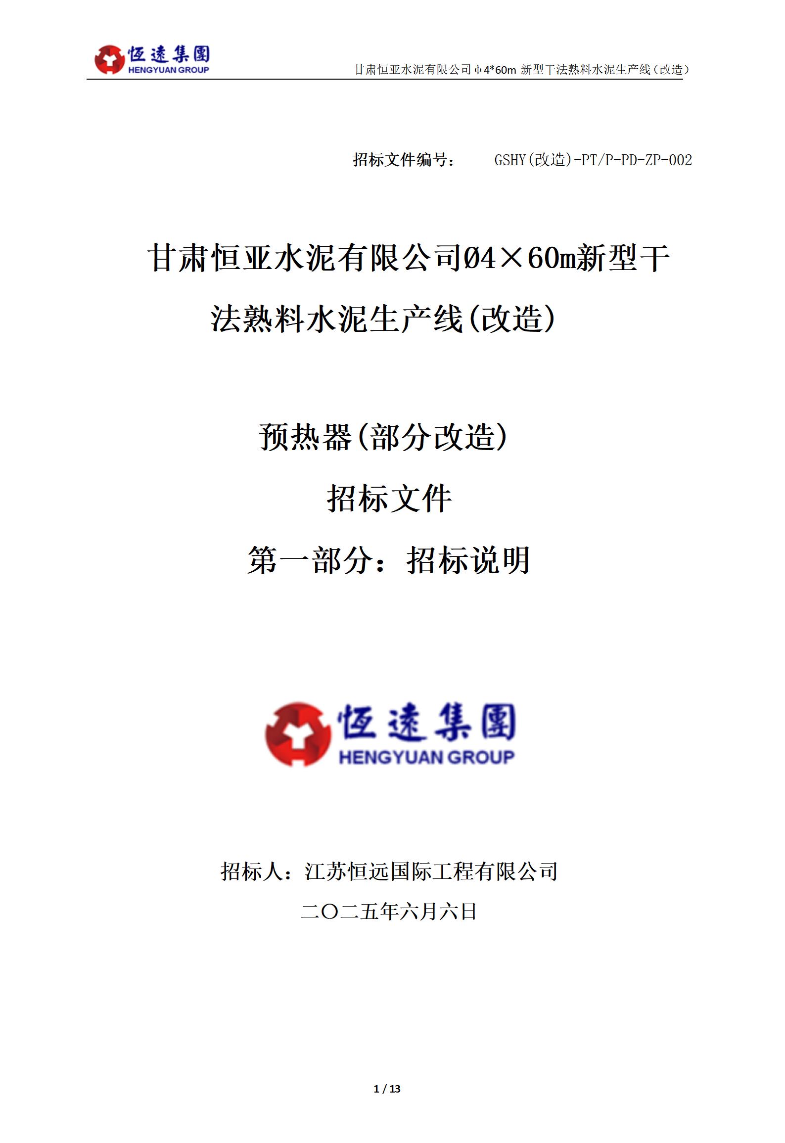 恒遠(yuǎn)集團(tuán)2025年6月6日甘肅恒亞水泥有限公司預(yù)熱器改造項目招標(biāo)